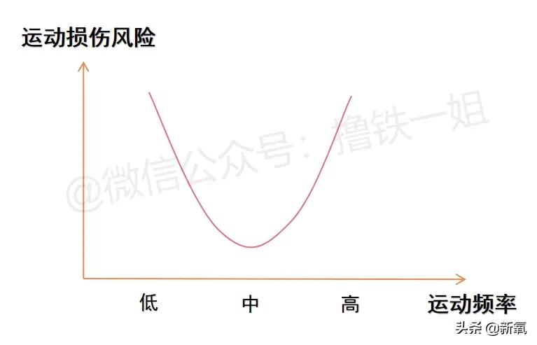 在适度运动的情况下,运动损伤的风险是最小的。而运动过量,和不运动,都会增加运动损伤的风险。