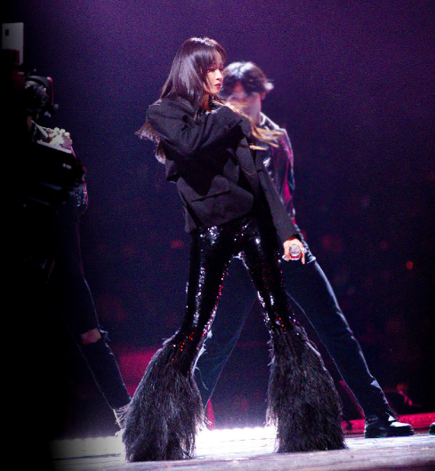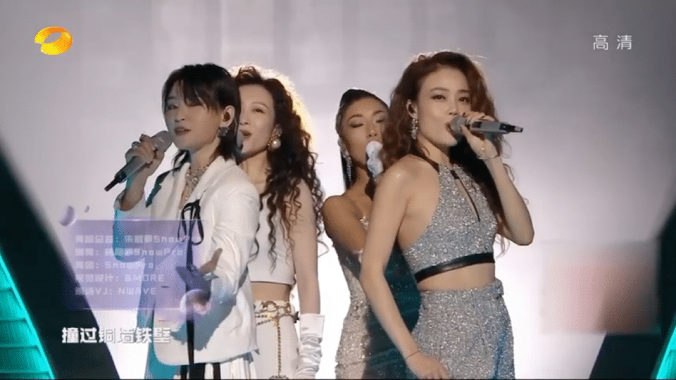 可能是舞台造型都比较夸张,宋茜的裤子有点让人难以欣赏。