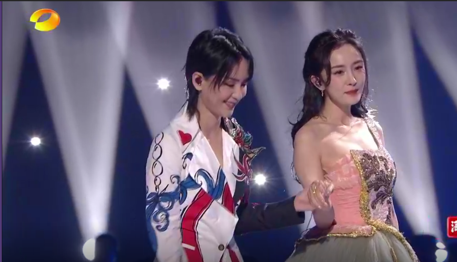 很巧,周笔畅与王鸥合作表演完,紧接着来跟杨幂合唱,毕竟这俩才是多年好闺蜜嘛。