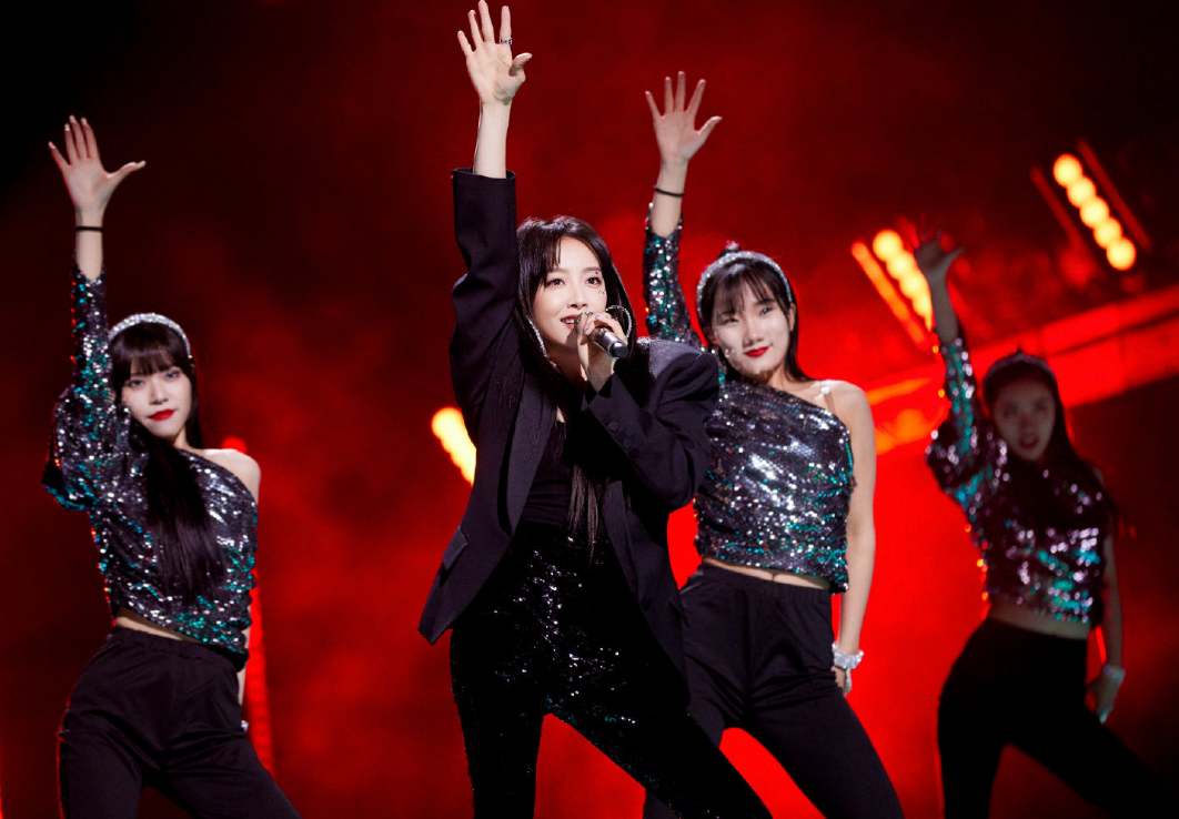 宋茜则是一身黑色的酷飒打扮,在舞台上嗨唱《别再问我什么是迪斯科》,屏幕前的饭姐简直被她带动起来,差点跟着音乐摇摆。