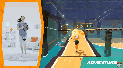 健身游戏《健身环大冒险》,内含60种健身动作,并接受玩家自定义添加动作。玩家只需手持环形体感控制器,待游戏识别到自己的动作后,即可在电视屏幕前打怪升级——在不知不觉间,达成今日份的锻炼目标。