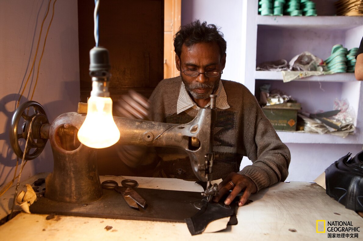 愛迪生的白熾燈,以及拉蒂默的貢獻,讓全世界人都能用得起照明設備,比如印度阿格拉的這個鞋匠作坊。攝影:AMY TOENSING, NAT GEO IMAGE COLLECTION
