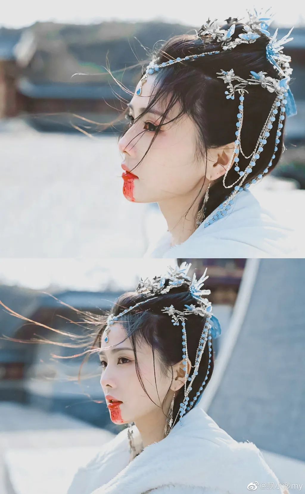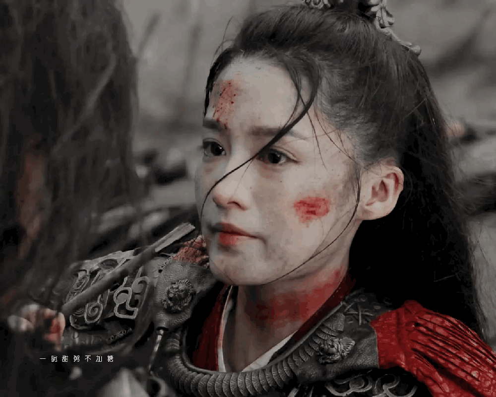 以前古裝,妝容是“不食人間煙火"的仙氣,如今的古裝,破碎感和堅韌感並存的 “戰損妝”才是氛圍感的大殺器。