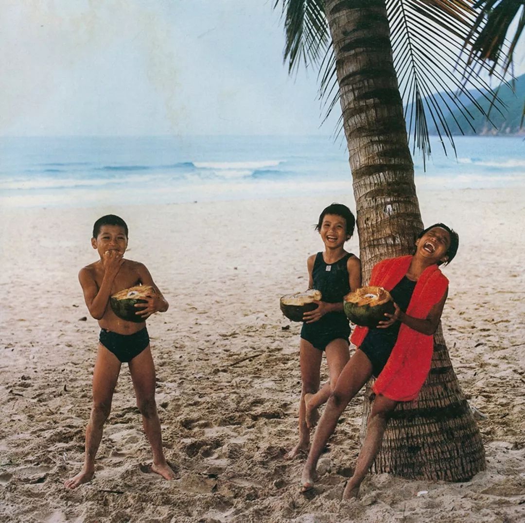 整个行程最为难得的是在30多年前,秋山去到了许多外国人不怎么有机会能去到的地方:海南岛。端着椰子、穿着泳衣、开怀大笑的小朋友,有着夏威夷一样的热情。