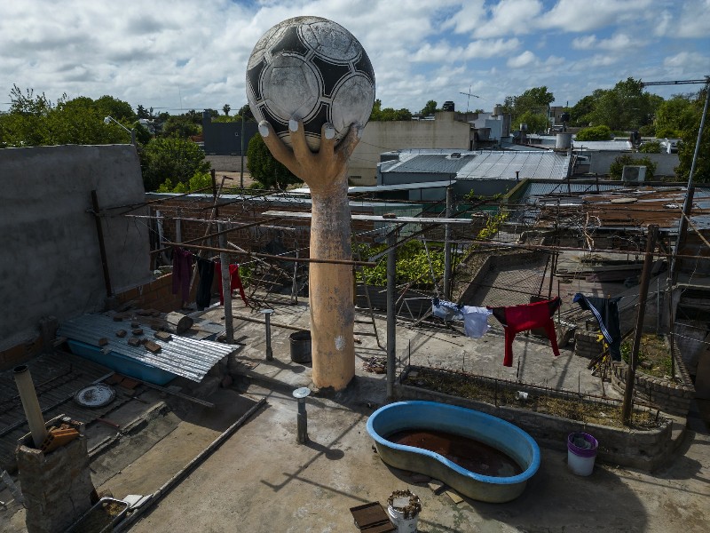 2022年10月18日,阿根廷一个乡郊有一座水塔,是纪念1986年世界盃马勒当拿的上帝之手而建成。