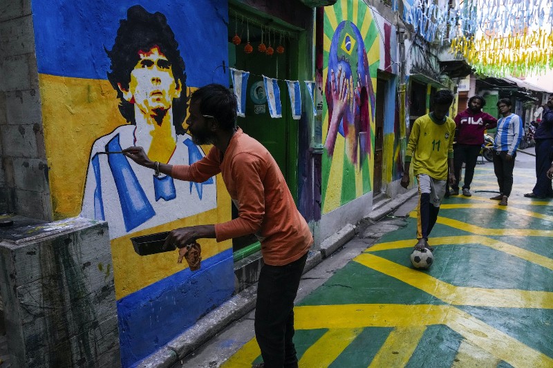 022年11月21日,远至印度加尔各答也有画家在绘画马勒当拿纪念壁画。