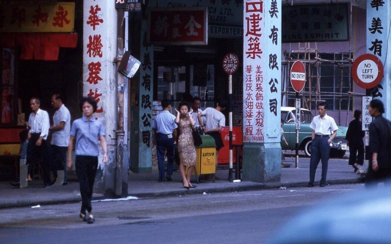風情萬種的長衫少婦, 清一色是白的恤衫, 可樂汽水櫃, 綠黃垃圾桶和白邊車軚。