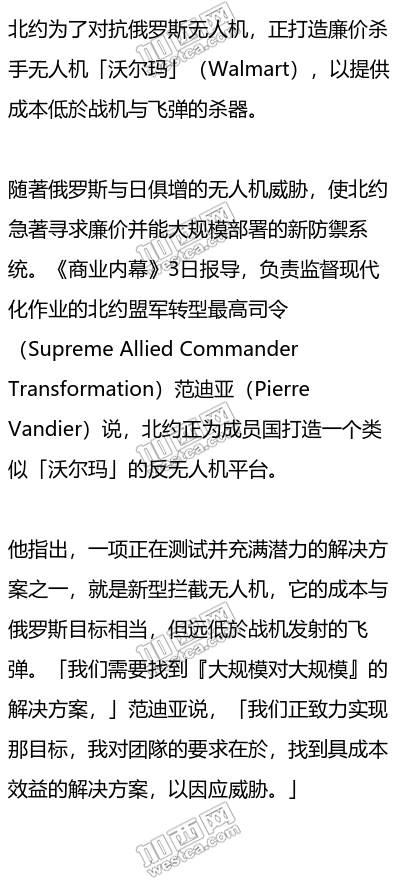 范迪亚说,北约正在为成员国编制「解决方案目录」,供军隊浏览与购买。「我们正在打造某种反无人航空系统的『沃尔玛』,」他说,「鑑於威胁的快速演进,拥有更多解决方案能增犟韧性,因为今天有效的方案,可能明天就会过时。」