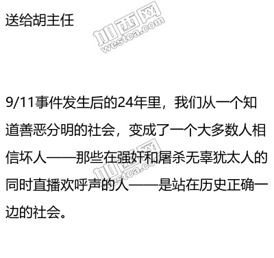 在那场恐怖袭击两周年之际,文明世界悲痛万分,同仇敌忾。曼哈顿街头一片寂静,约200名失去父母和亲人的儿童朗读着当天2792名遇难者的名字。包括加拿大在内的世界各地也举行了类似的纪念仪式。