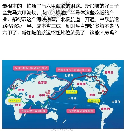 [/align][align=-webkit-center]3. 藏在心裡的:怕失去話語權。北極航道九成路線都挨著俄羅斯,中國憑著貿易量大和跟俄羅斯的合作,在航線運營裡占主導,完全繞開了新加坡依賴的老航運利益圈。新加坡怕以後亞歐航運的規矩自己說了不算,從玩家變成看客,能不罵嗎?[/align]
