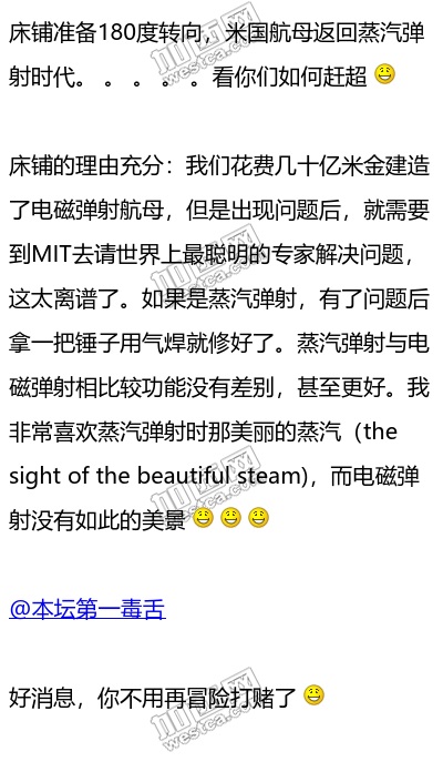 從頭再來,把蒸汽彈射技術重新擺上桌,強迫中國把蒸汽彈射生產技術和設備搬到美國,把倒閉了的蒸汽彈射工廠重新盤活,替美國蒸汽彈射航母的制造出力!