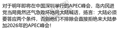 如果不是想过来单纯谈经济贸易,也不愿意在遵守“一个中国”原则的基础上参会,那么台当局连参加APEC峰会的资格都没有。
