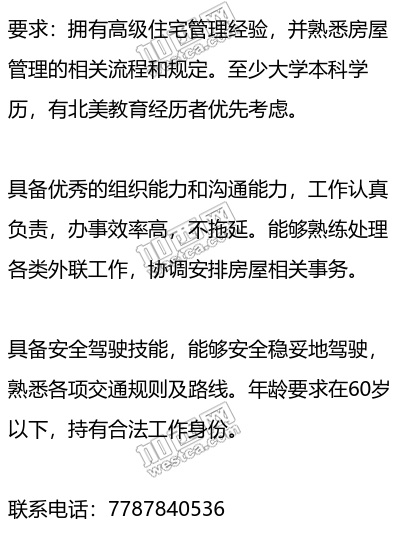 高级助理兼房屋管理