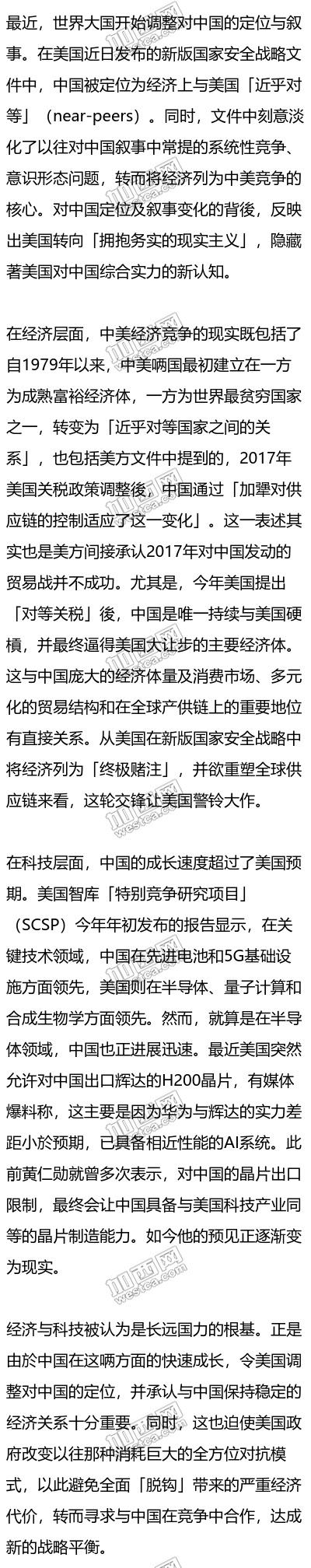 不可否认的是,当今世界依然是实力为王。世界大国对中国叙事的转变必定建立於对中国新的全面认知之上。台湾也应主动、务实跟进,认识中国大陆的真实发展,更新对中国大陆的全面认知,包括对其科技创新、民生改善与文化多元面貌的瞭解,这不仅有助於减少唡岸之间的误解,还能更有效地把握合作机遇。
