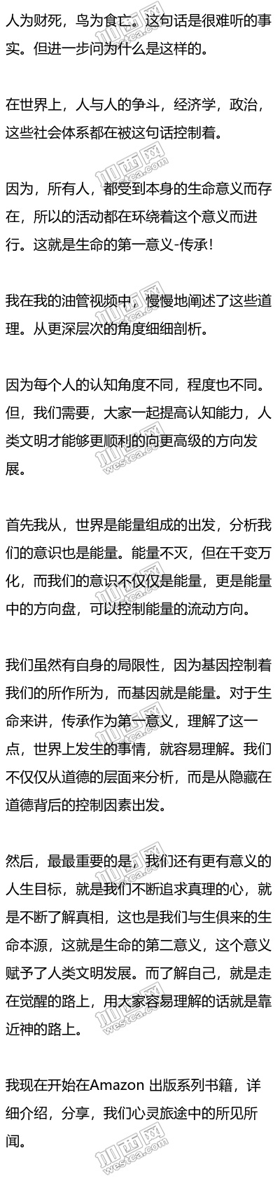我的书的主要观点在我的视频中有部分,同时还会有更多的新观察和新的观点和大家一起分享。现在媒体信息太多,戾气也很重。但相信,明天会更好,从科学的角度,更深入的观察,会发现,原来自己生活的世界是如此的精彩。生活的美好来自自己的内心富足,家庭的幸福,来自自己的智慧。