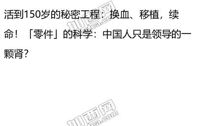 活到150岁的秘密工程:换血、移植,续命!「零件」的科学:中国人只是领导的一颗肾?