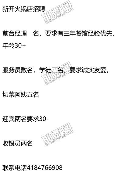 新开火锅店招聘