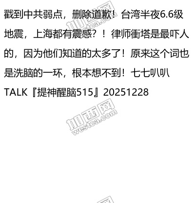 戳到中共弱点,删除道歉!台湾半夜6.6级地震,上海都有震感?!律师n塔是最吓人的,因为他们知道的太多了!原来这个词也是洗
