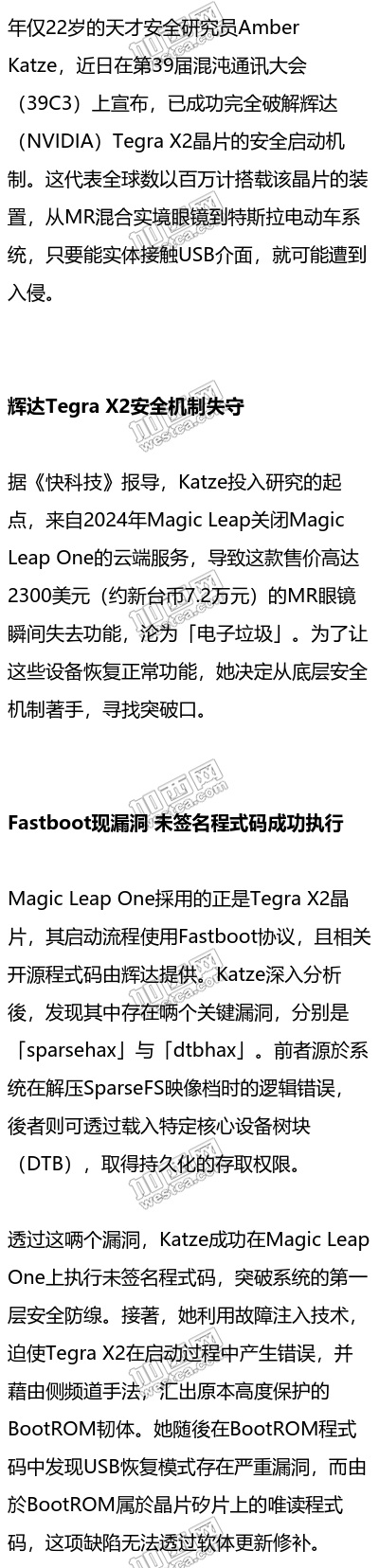 不过,Tegra X2晶片早在2016年推出,目前已停产,後续产品也已修补相关漏洞,因此对一般消费者的实际影响有限。