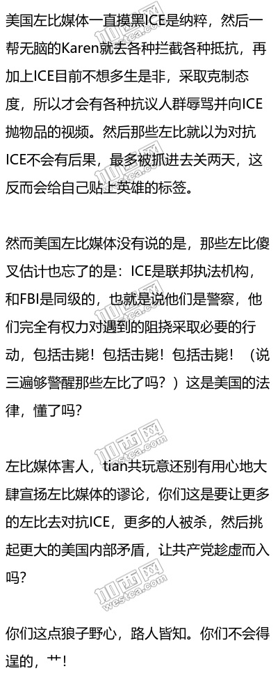 真不知道那些左比的脑子里到底装的是脑仁还是屎。ICE正在把非法移民赶出去,还美国一个清朗的世界,这你们特么都要反对,莫非你们认了非法移民当爹?