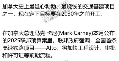 烧钱 加拿大宣布首条“300km/h高铁”提前动工