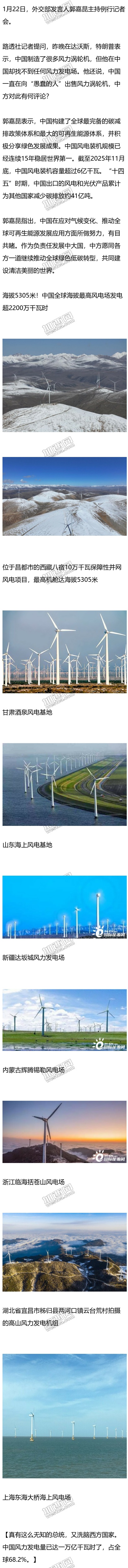 美总统称“在中国找不到任何风力发电场”中国外交部回应