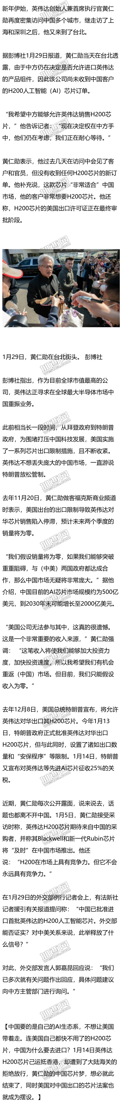 黄仁勋:还没收到任何中国客户的H200芯片订单,我们正在耐心等待