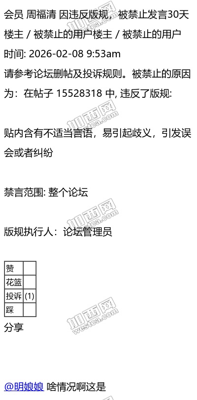 会员 周福清高祖的爷爷 因违反版规,被禁止发言30天