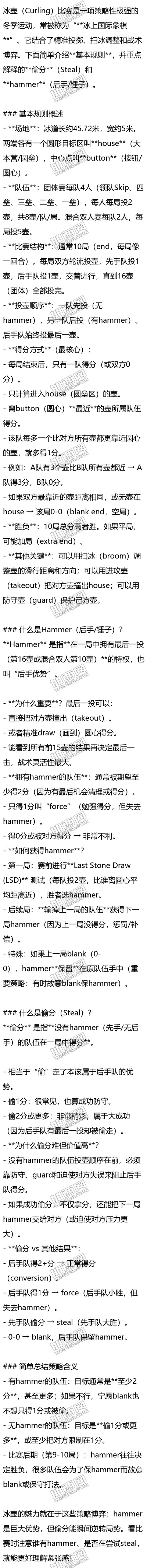 個人覺得冰壺是冰上運動中最無聊的一種。。。個人感覺而已。特別是放手之後那一連串的吼叫。。。。冰壺都出手了,行就行,不行就不行,吼來幹個毛哦,又不能改變什麼,靜靜地看結果就行了。