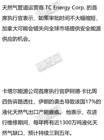 非常希望看到通往海岸的输油管道的审批时间缩短——而且要大幅缩短。”