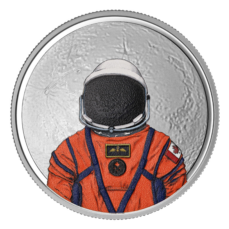 這枚紀念幣以趣味盎然的方式展現了此次任務的意義,其背面采用選擇性著色,在紫外線燈下呈現出全新的含義。令人驚喜的色彩變化讓觀者仿佛置身於月球之上,親眼目睹地球的壯麗景象——在此次任務之前,沒有一位加拿大人有機會親眼目睹這令人歎為觀止的景象。