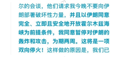 最後一小時 伊朗同意【完全】【立即】【安全】開放海峽。同時告訴伊朗人民說伊朗贏了,哈哈哈哈