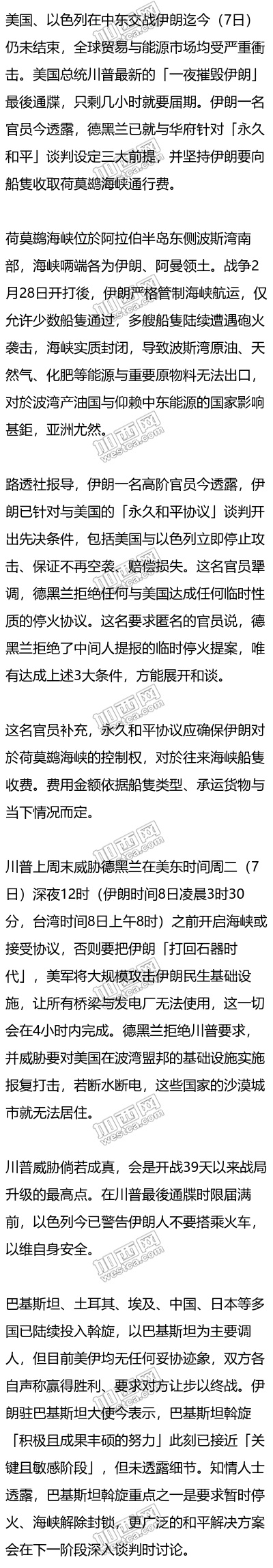 伊朗官員透露「和談3大前提」 堅持收海峽通行費