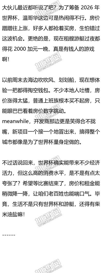 2026 世界杯引溫哥華住房熱潮 游艇一晚 2000
