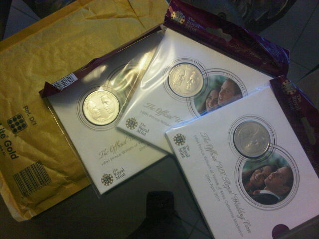 不过告诉你一个好消息,英国的royalmint.com上面值5英镑的那个royal wedding coin写的是9.99英镑一个,但是寄加拿大实际是8.32英镑一个,邮费买多少个都是10英镑