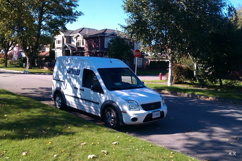 与建筑承包商签订合同后,第一件事情是地块测量,由专业公司进行。下图是测量车。我们散步时候偶尔可以看到下面这种标志,这就是测量公司打下的标志,宣布这家要盖房子了。