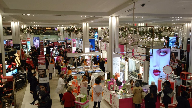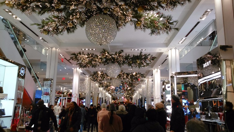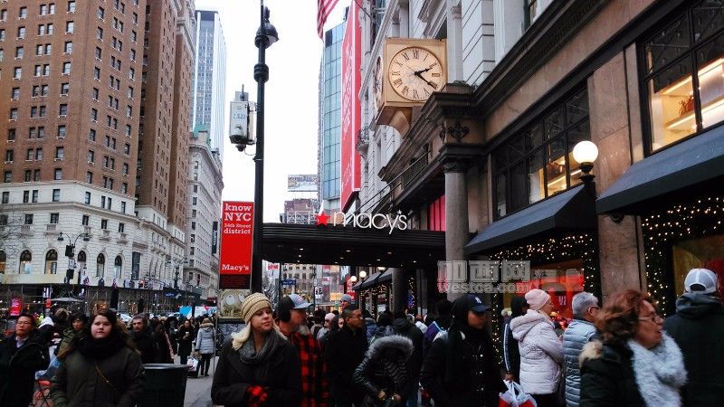 梅西里面太大了,拥挤的人群,节日的装饰...