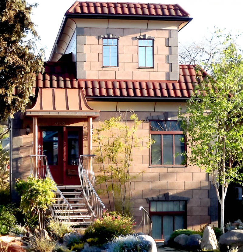 全屋铺设瓷砖地面与外墙,维护简单,耐久性强