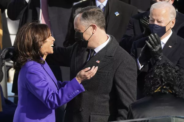 ▲美國副總統賀錦麗2021年宣誓就職的這天穿上紫色服裝。(圖/達志影像/美聯社)