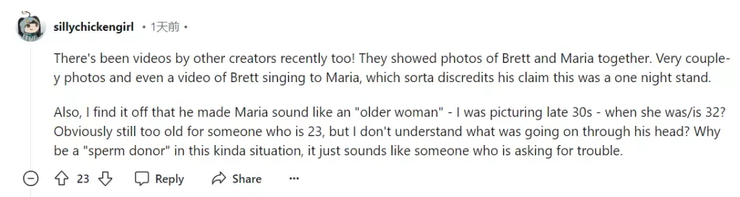 最近也有其他創作者發視頻!他們展示了布雷特和瑪麗亞在一起的照片。很多情侶照,甚至還有布雷特對瑪麗亞唱歌的視頻,這讓他的一夜情說法有點不可信。
