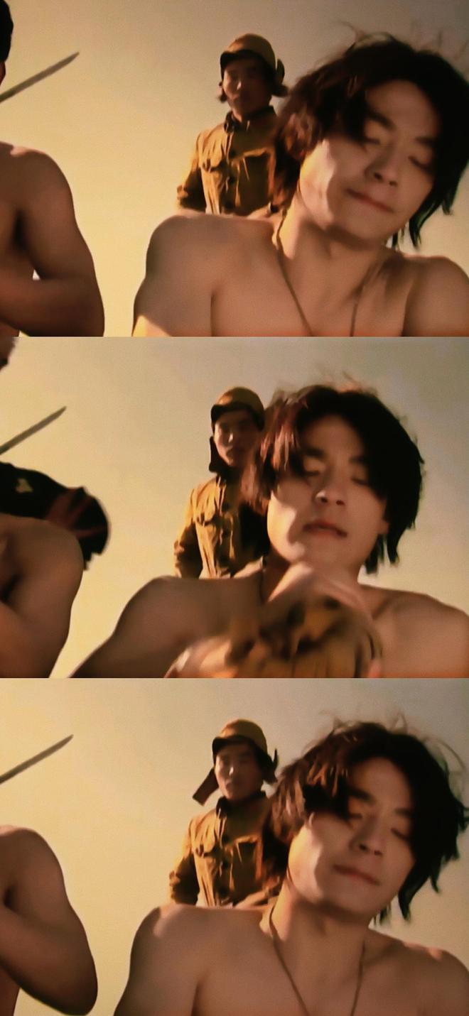 年輕時的他,眉眼舒展,黑瞳仁亮、清澈,面容是沒有塗抹脂粉的粗糙,原始的,野性的,又周正的,輪廓有雕塑感,金城武那掛的俊朗型美男。