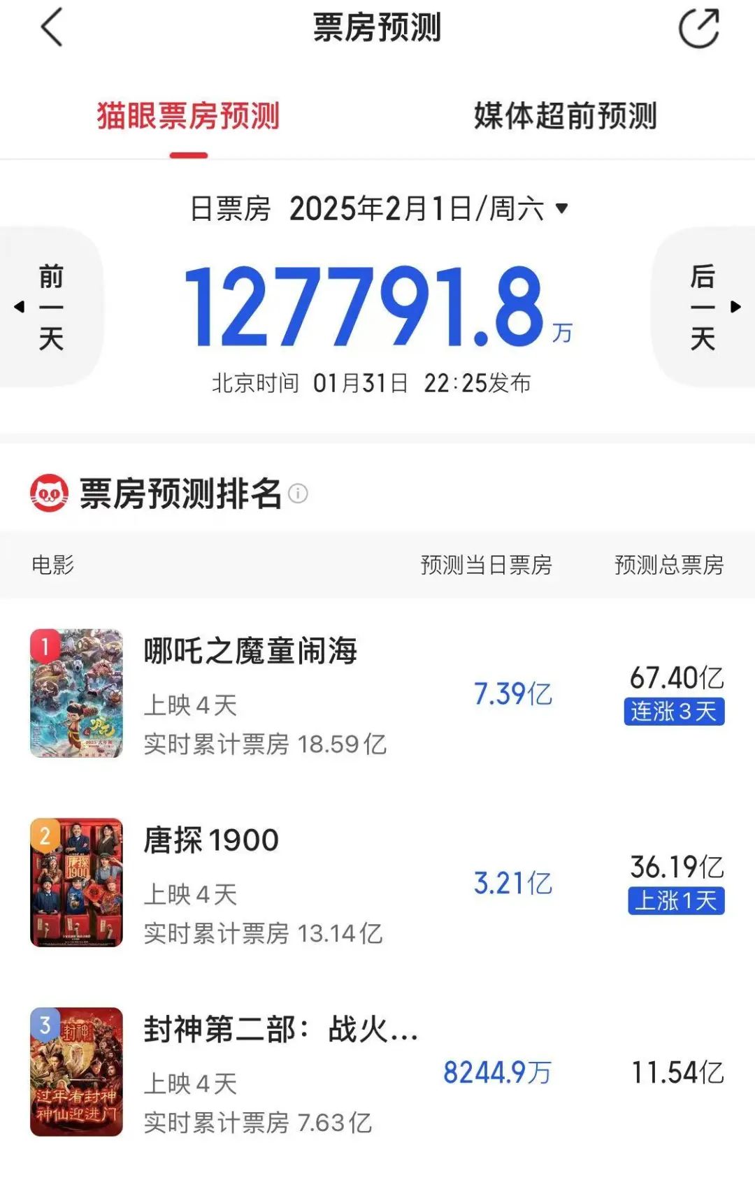 1月31日,电影《哪吒之魔童闹海》(《哪吒2》)单日总票房超6.1亿元,这也是中国电影票房排行榜上第三部单日票房破6亿的影片,上映3天总票房超过18.5亿元。