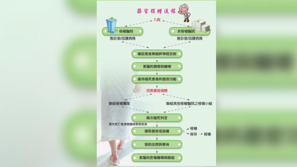 台灣的器官捐贈程序根據社團法人台灣器官捐贈協會說明,需經兩次腦死判定、確認無腦幹神經反射後,才可進行摘除流程。 在此期間,醫療團隊會與家屬充分溝通與關懷,取得同意書後,通知移植團隊待命,並確保捐贈者的生命征象穩定,以保障器官質量與手術安全。 手術後,院方亦提供後續哀傷輔導,陪伴家屬度過難關,並尊重其心願與尊嚴。- 新聞來源於其它媒體,內容不代表本站立場!