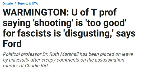 The Pleb Reporter发帖称:“多伦多大学政治学教授谈查理·柯克去世:‘如果你想知道为什么现在大学里的年轻人越来越激进,’这些就是那些洗脑学生的卑劣教师。”