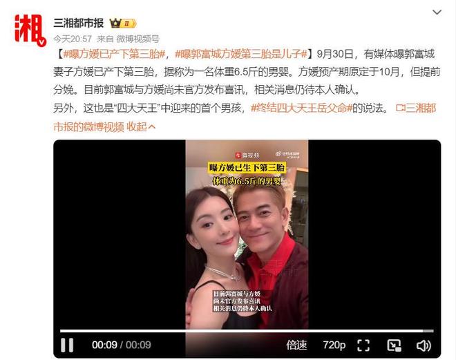 紧接着港媒又爆料称方媛三胎生了,60岁的郭富城三度当爸了。