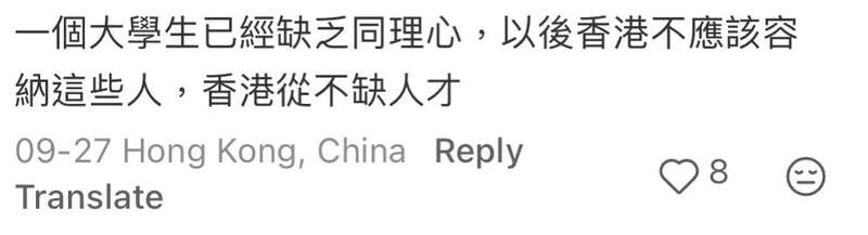 有香港网民对判决表示支持,认为这位内地生缺乏同理心,香港不缺人才,不应该容纳这种人。