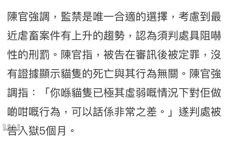 虽然这次虐猫事件已经告一段落,但香港法院在判决时的一句话却引起了圈妹的注意。
