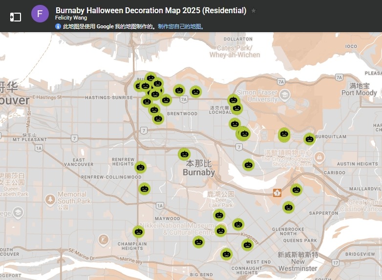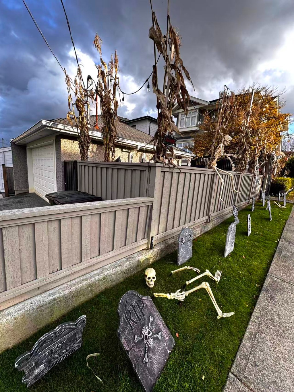 _NEWSDATE: 2025-10-30 | News by: 加西网 | 有0人参与评论 | 专栏: 吃喝玩乐温哥华 | _FONTSIZE: _FONT_SMALL _FONT_MEDIUM _FONT_LARGE(加西网综合)明天就是孩子们最爱的“不给糖就捣乱”的万圣节,大温地区各家各户的万圣节装饰已经早早登场~~