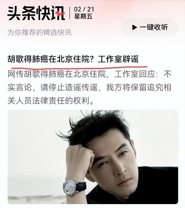 今年2月,“胡歌肺癌晚期住院”的消息炸穿全网,北京某三甲医院呼吸科床位、亲友探望等细节被编造得有鼻子有眼,连老粉都忍不住揪心祈福。