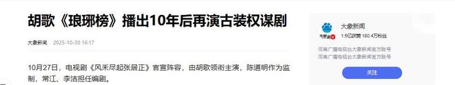 鲁网|演员胡歌,官宣新身份 大象新闻|胡歌《琅琊榜》播出10年后再演古装权谋剧